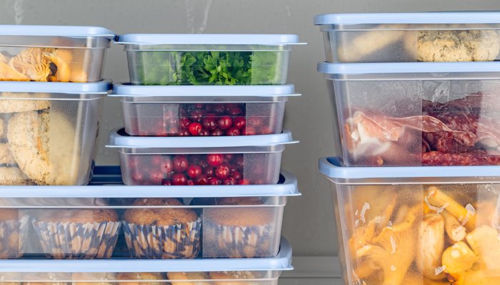 Med tätslutande lock som är enkla att öppna även direkt från frysen, staplingsbara och transparenta.